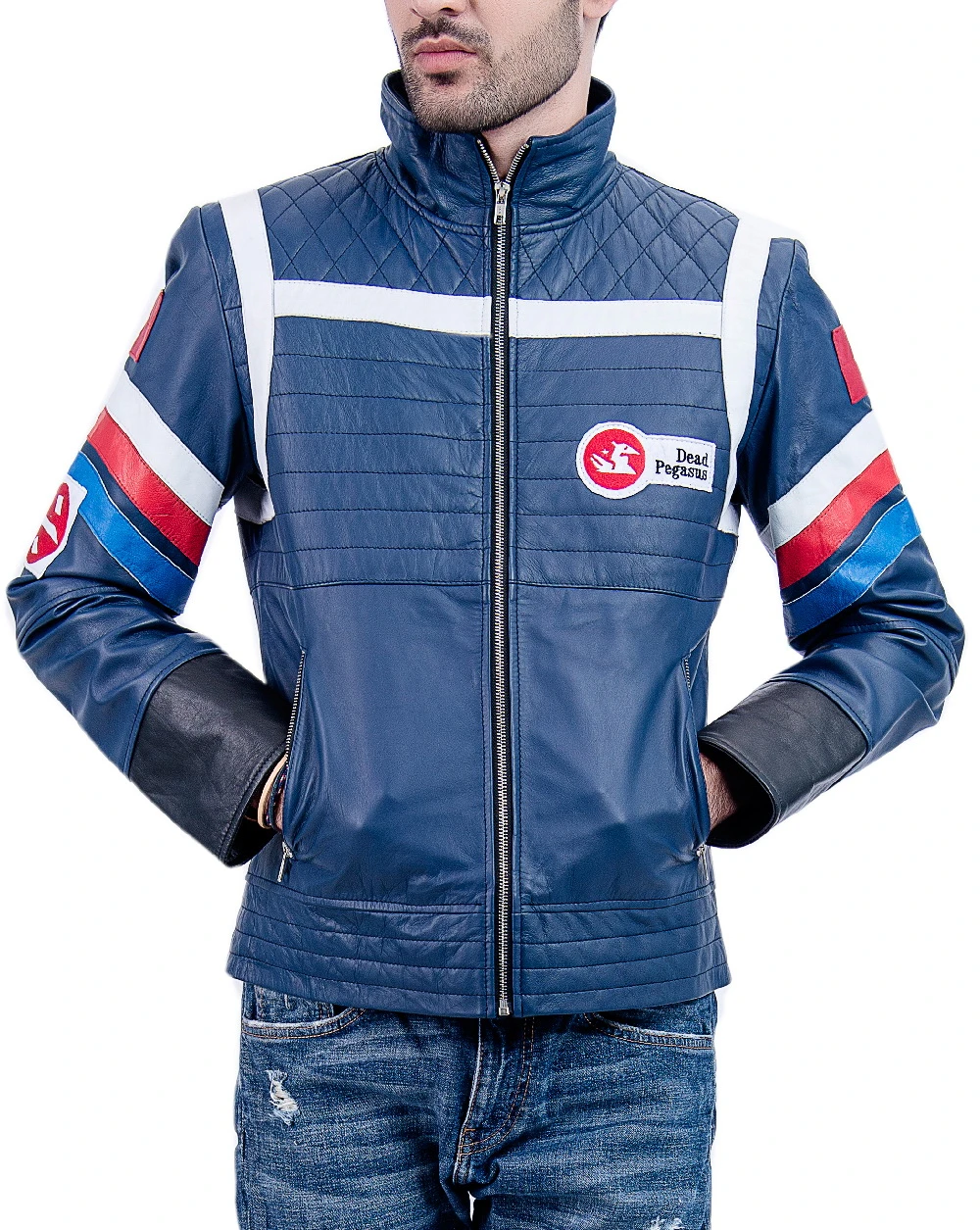 This Gerard Way jacket has given beautiful Diamond quilting on the upper chest and padding lines over the chest and down to hem. It is the first copy of Party Poison Jacket made by real leather for lasting endurance. Having mid-length sleeves with two side zipper pockets for warming your hands. A fit to body shape biker jacket style included top-notch YKK zipper goes all up to the stand-up collars. Great stitching details with the logo of Dead Pegasus on right arm and chest looks spectacular. This blue jacket is pretty appropriate for casual hangouts, clubs and parties.
