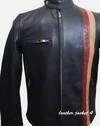 This replica jacket inspired by X Men movie The Last Stand worn by Scott Summers (Cyclops). It features a two-tone leather accent strip for authenticity, available in 100% Real lamb full grain and PU Leather. It have front & arm pocket and vintage slim fit. The red and brown stripes on the side of the chest accord you a sleek and trendy look. The premium quality viscose lining drives comfort come-home. The snap button moto collar asserts your riveting appearance whereas the zipped cuffs enhance your barrenness to the core. Make a great impression with our Super Stylish leather jackets, perfect with Khakis or Jeans.