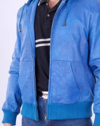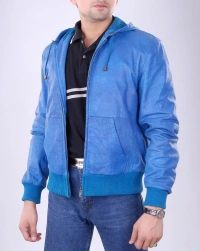blue leather, leo jacket, men leather jacket, blue leather jacket, leather hoodie, leather hoodie jacket, mens hoodie, mens hoodie jacket, blue hoodie